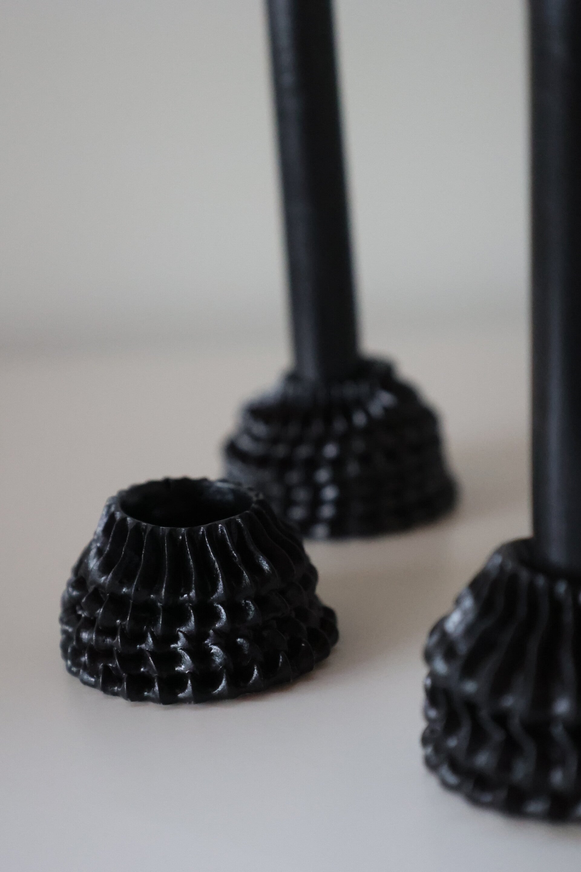 De zwarte kaarsenstandaard is te koop via deze website of bij mij thuis in het atelier.